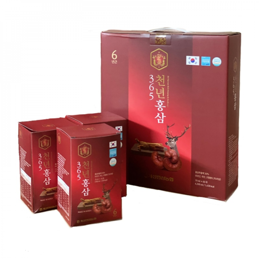 Nước Hồng Sâm Nhung Hươu Linh Chi Hàn Quốc 365 Hộp 60 gói x 70ml